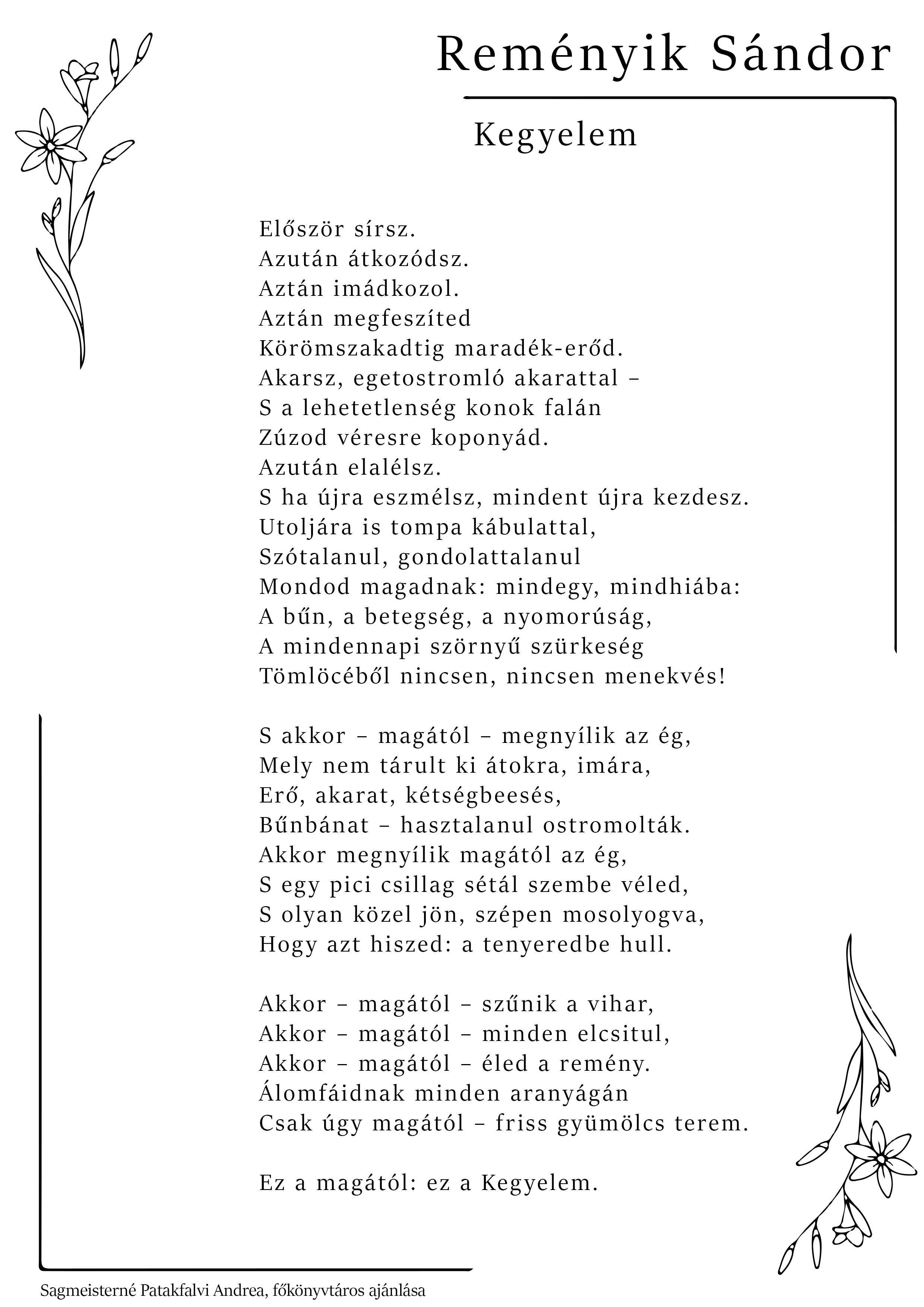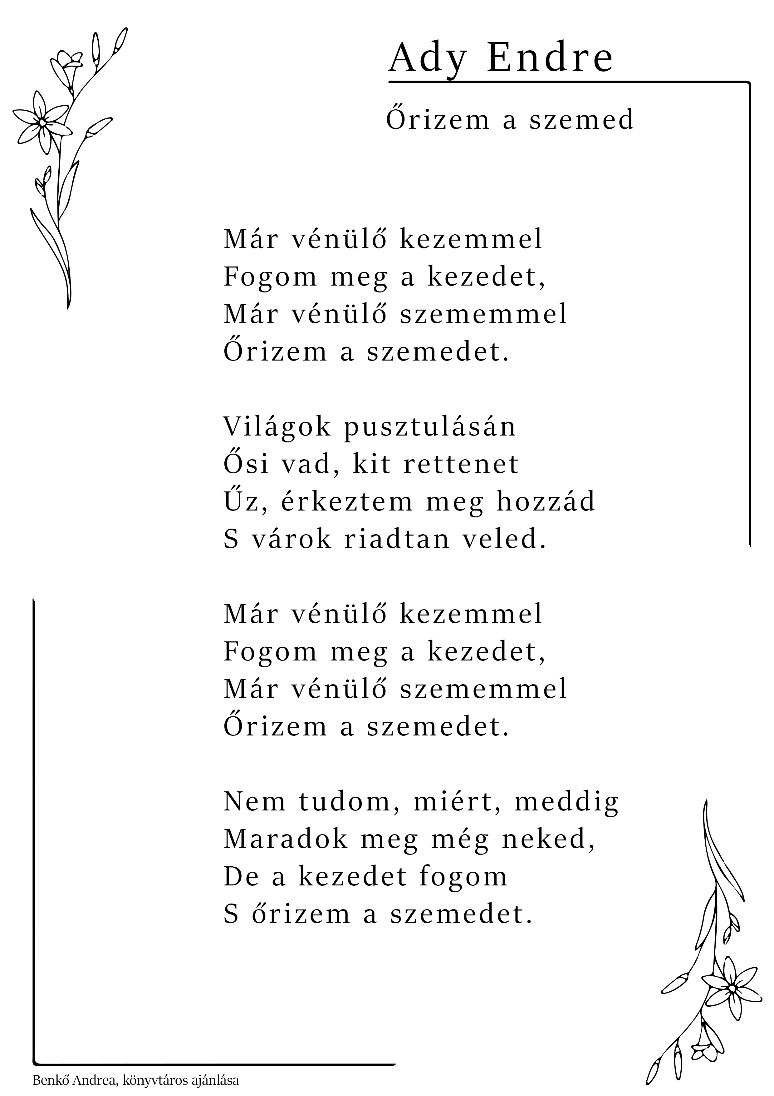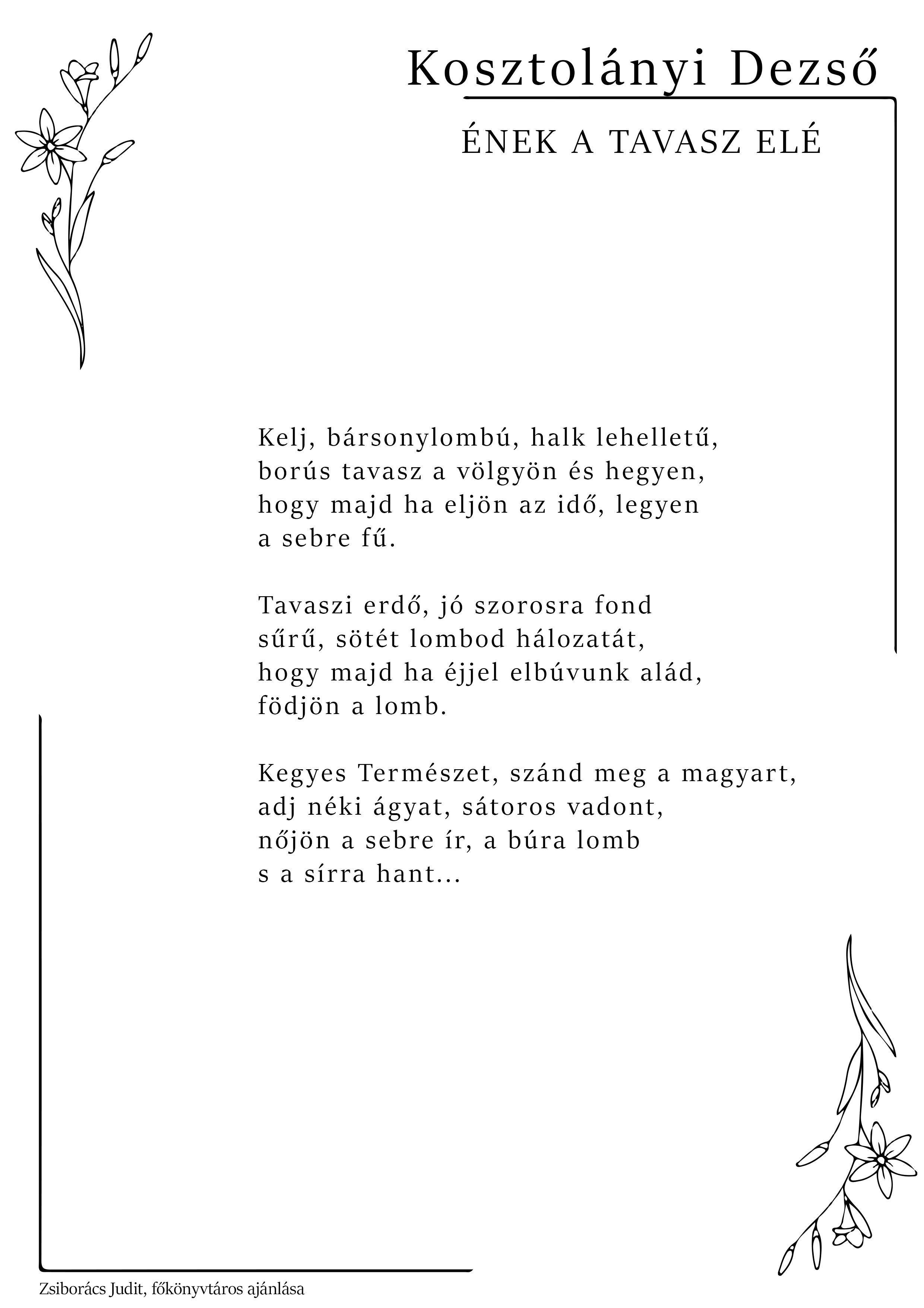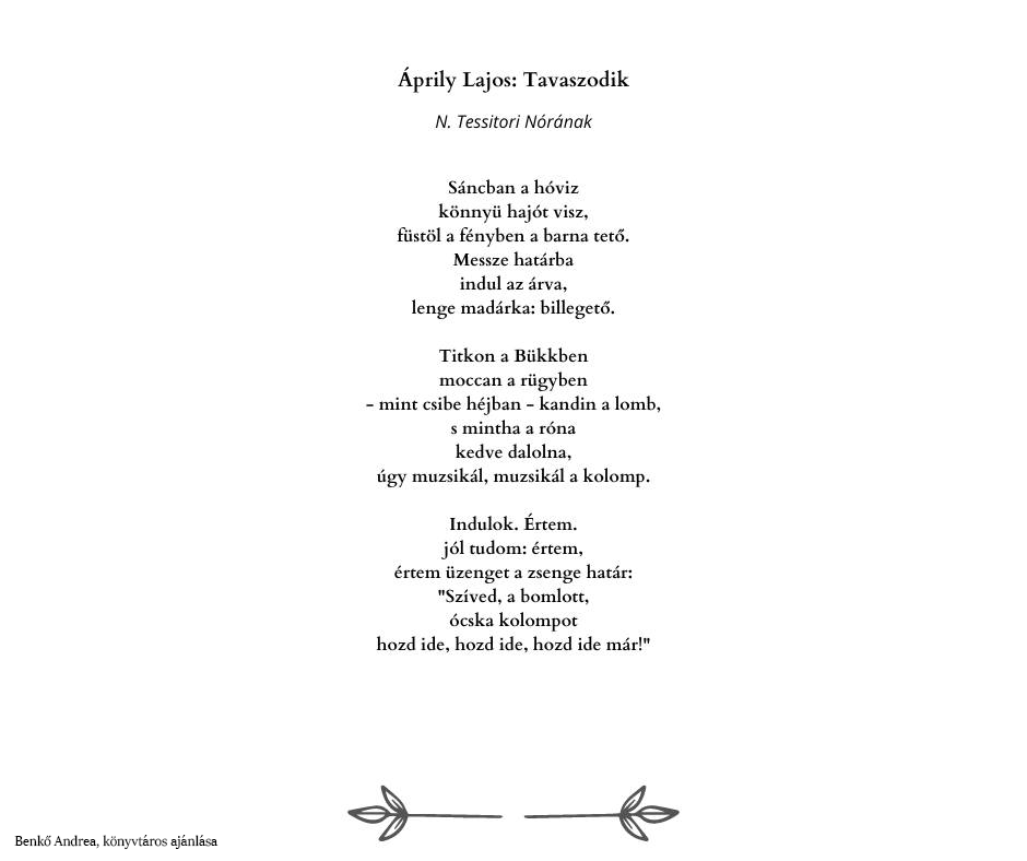 A költészet napja alkalmából a PEKT munkatársai ismét kedves verseiket ajánlják olvasóink figyelmébe. Idén kicsit másként: csokorba gyűjtöttük és így tesszük közzé a korábbi évek kedvenceit, a verset ajánló munkatársunk neve a lap alján olvasható.