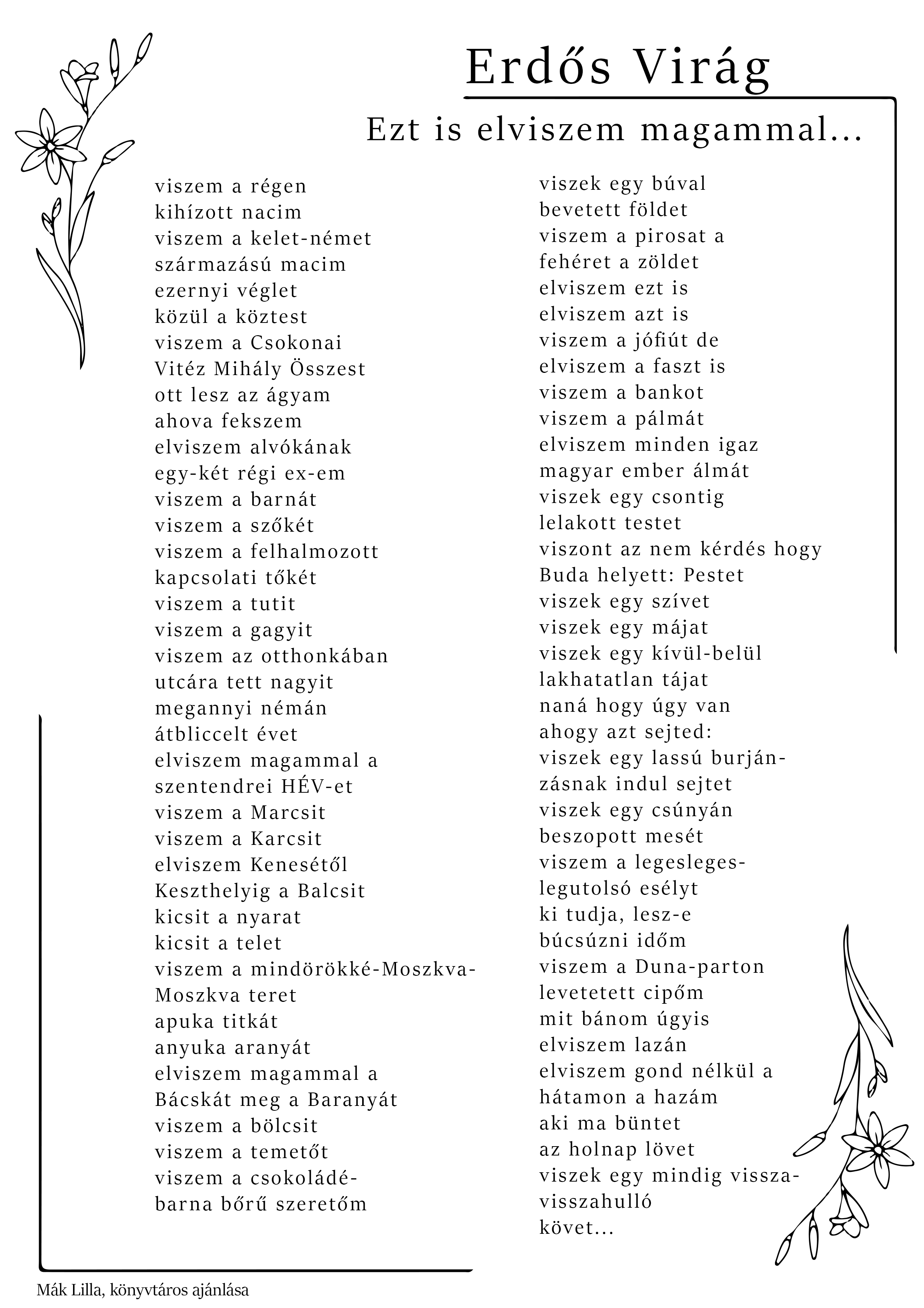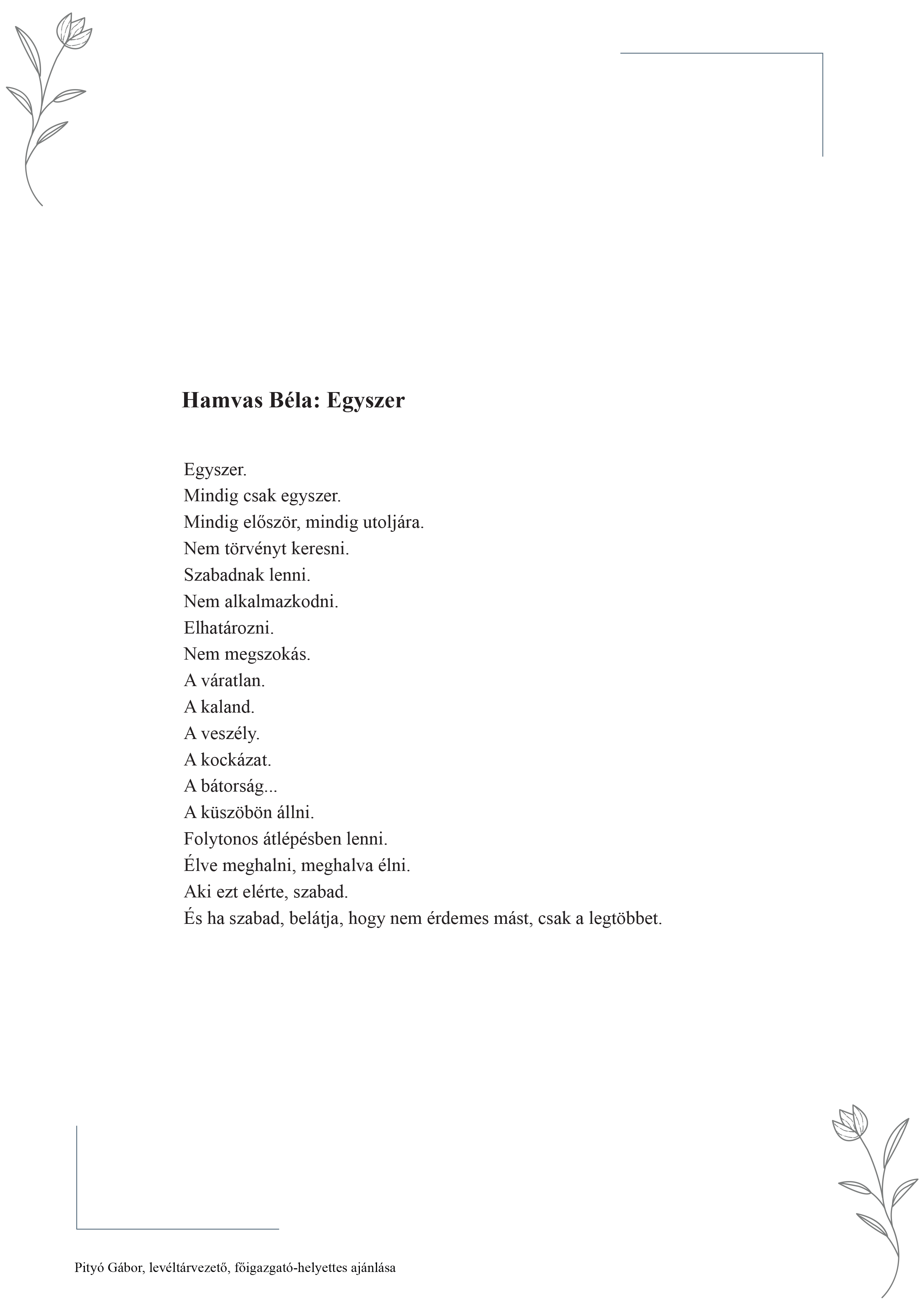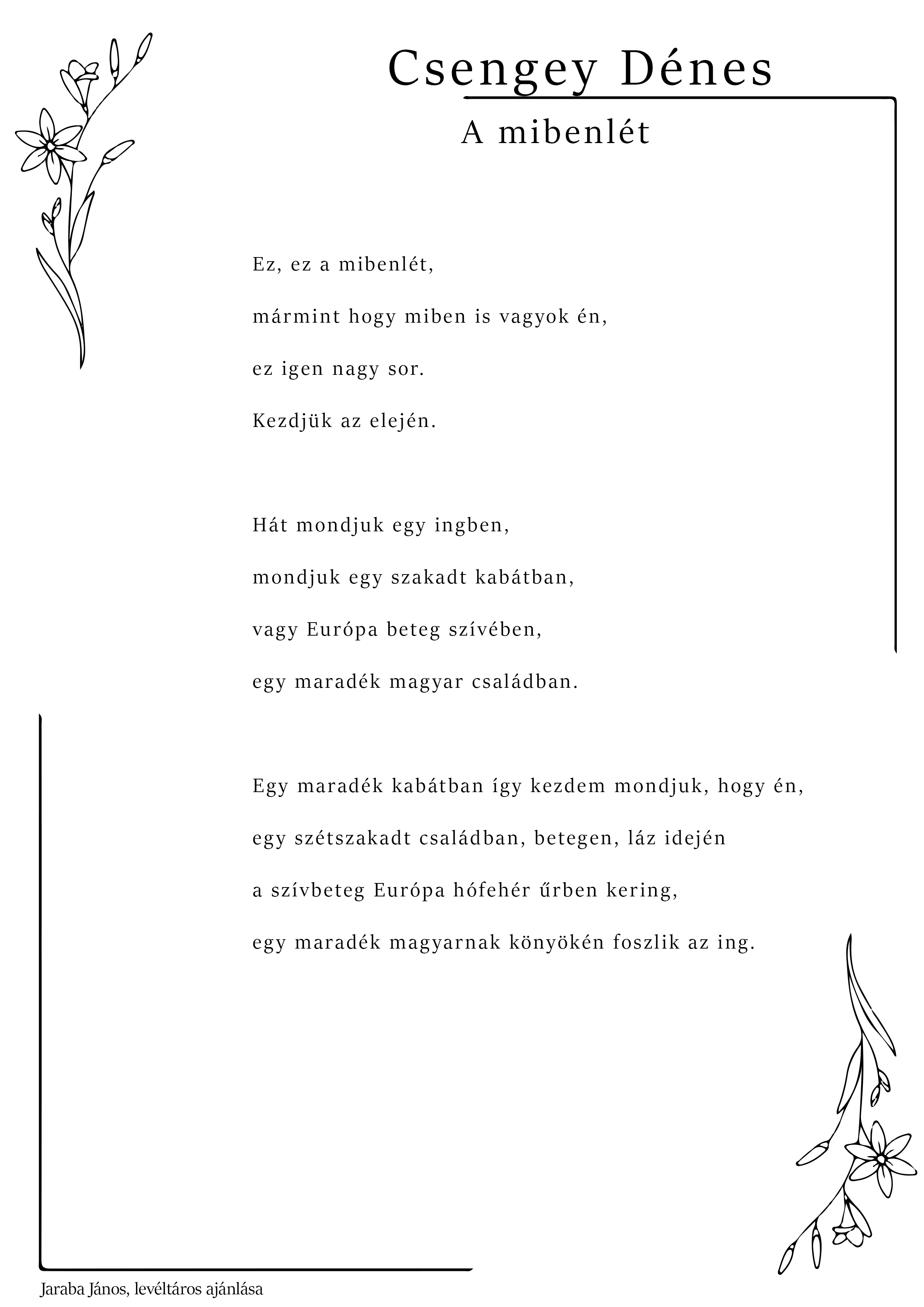 A költészet napja alkalmából a PEKT munkatársai ismét kedves verseiket ajánlják olvasóink figyelmébe. Idén kicsit másként: csokorba gyűjtöttük és így tesszük közzé a korábbi évek kedvenceit, a verset ajánló munkatársunk neve a lap alján olvasható.