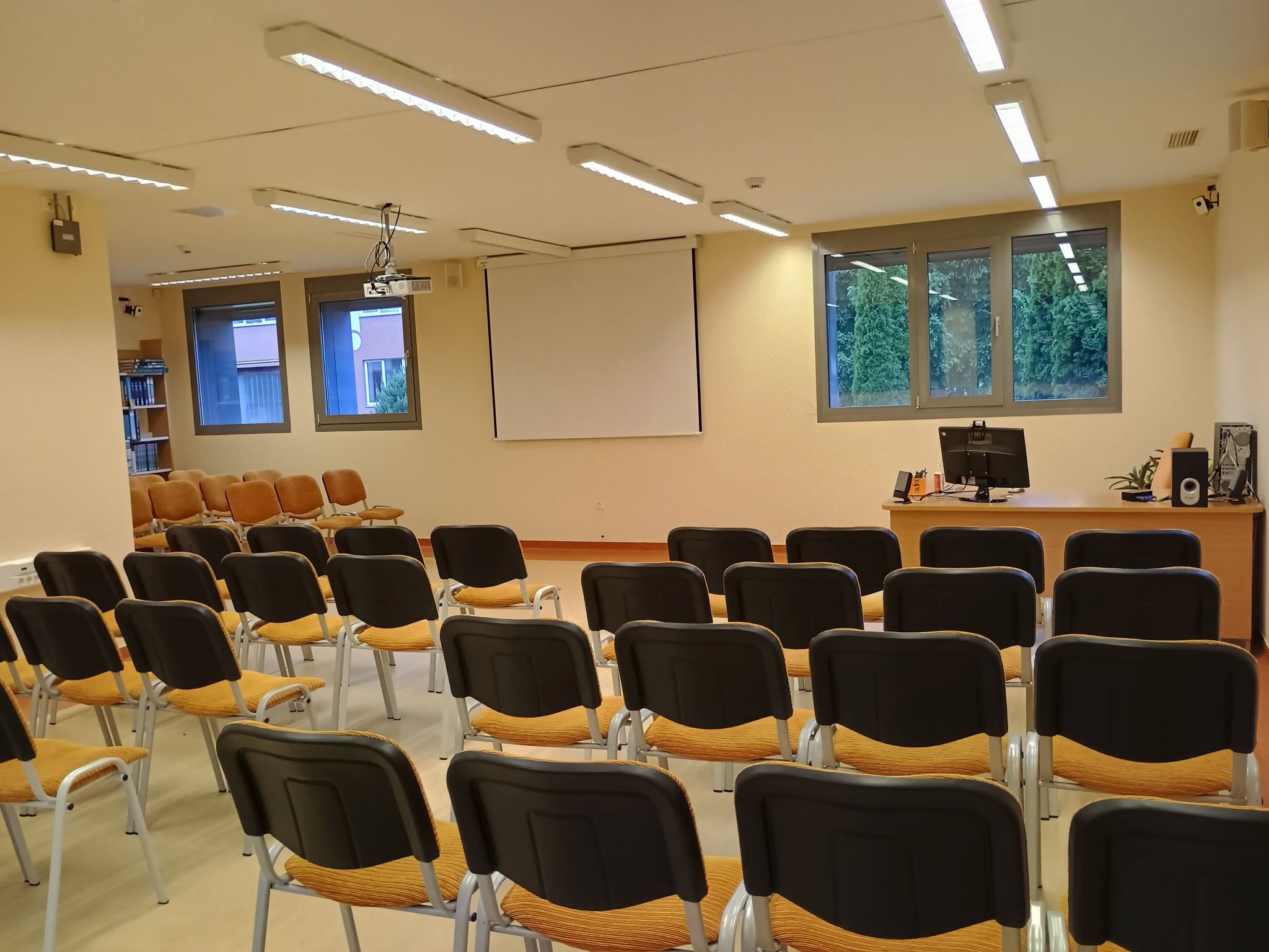 A prezentációs technikával felszerelt előadóteremben vannak elhelyezve a nem kölcsönözhető kézikönyvek (enciklopédiák, lexikonok, adat- és címtárak, atlaszok). A teremben 60 ülőhely áll foglalkozások rendelkezésére. Az előadói számítógépet a rendezvényeken kívüli időszakokban az olvasók is használhatják.