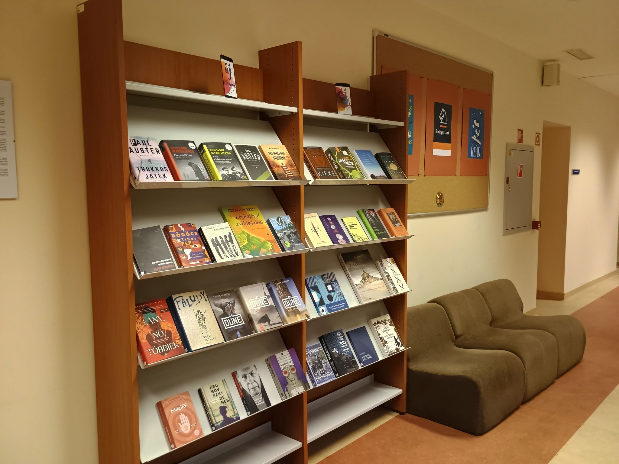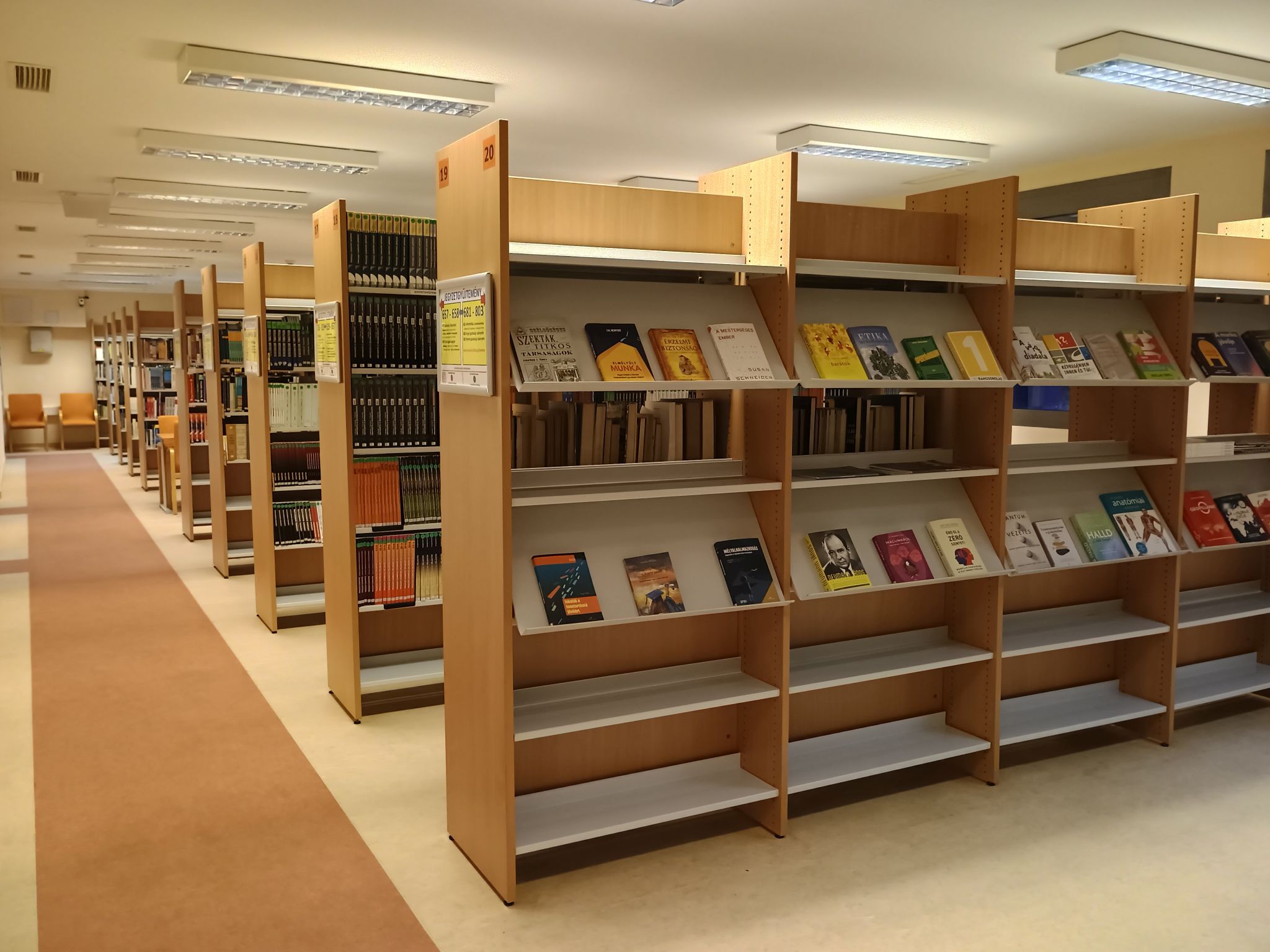 A szabadpolcos könyvállomány elhelyezésére szolgáló térben a könyvtár bejáratához közelebbi részen a Tankönyv- és jegyzetgyűjtemény kiemelt elhelyezésű. A dokumentumokat a látogatók helyben, beiratkozás nélkül is használhatják. A kölcsönzéshez beiratkozás szükséges.