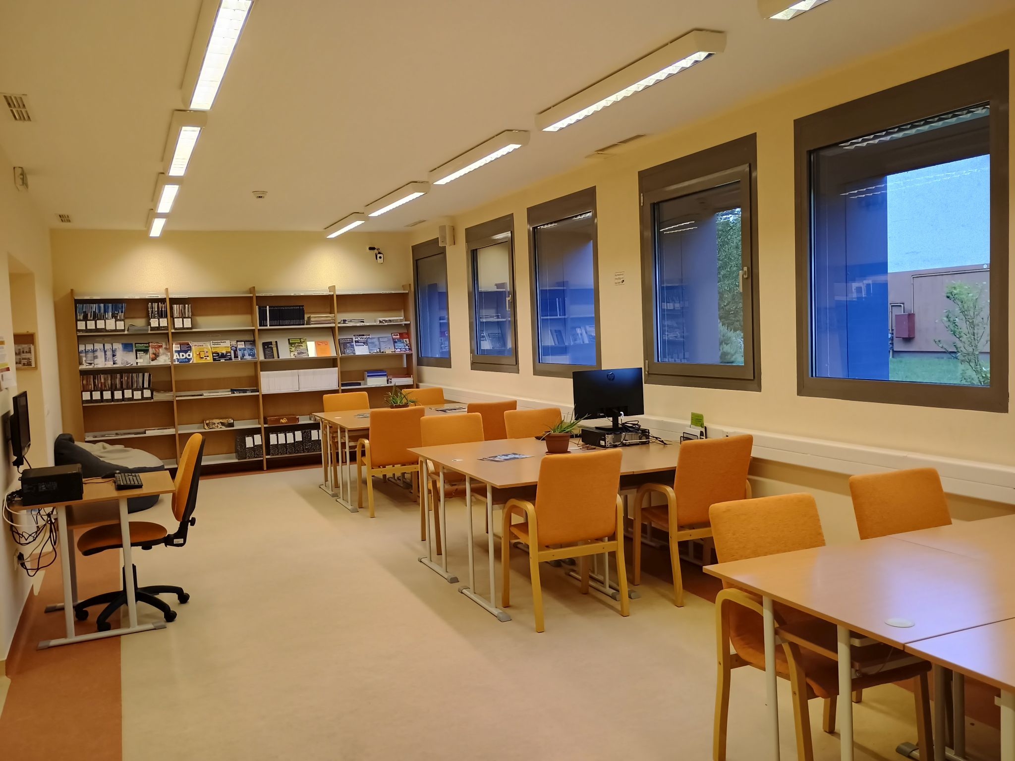 A teremben két kutató munkaállomás és egy dedikált számítógép áll rendelkezésre kutatási, tanulmányi célokra, valamint itt találhatók a folyóiratok, továbbá a könyvtári társasjáték kínálat egy része. A dedikált számítógép NAVA-pont, valamint a Dolgozat Repozitórium digitális szakdolgozatainak megtekintésére fenntartott, védett informatikai környezetet biztosító terminál.